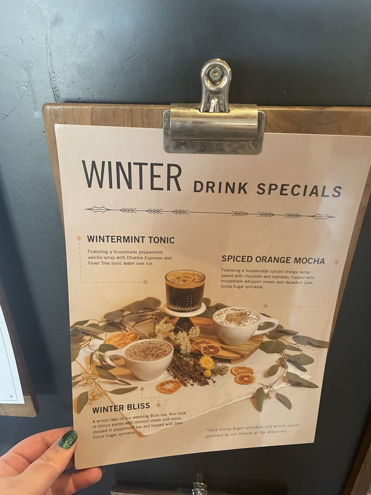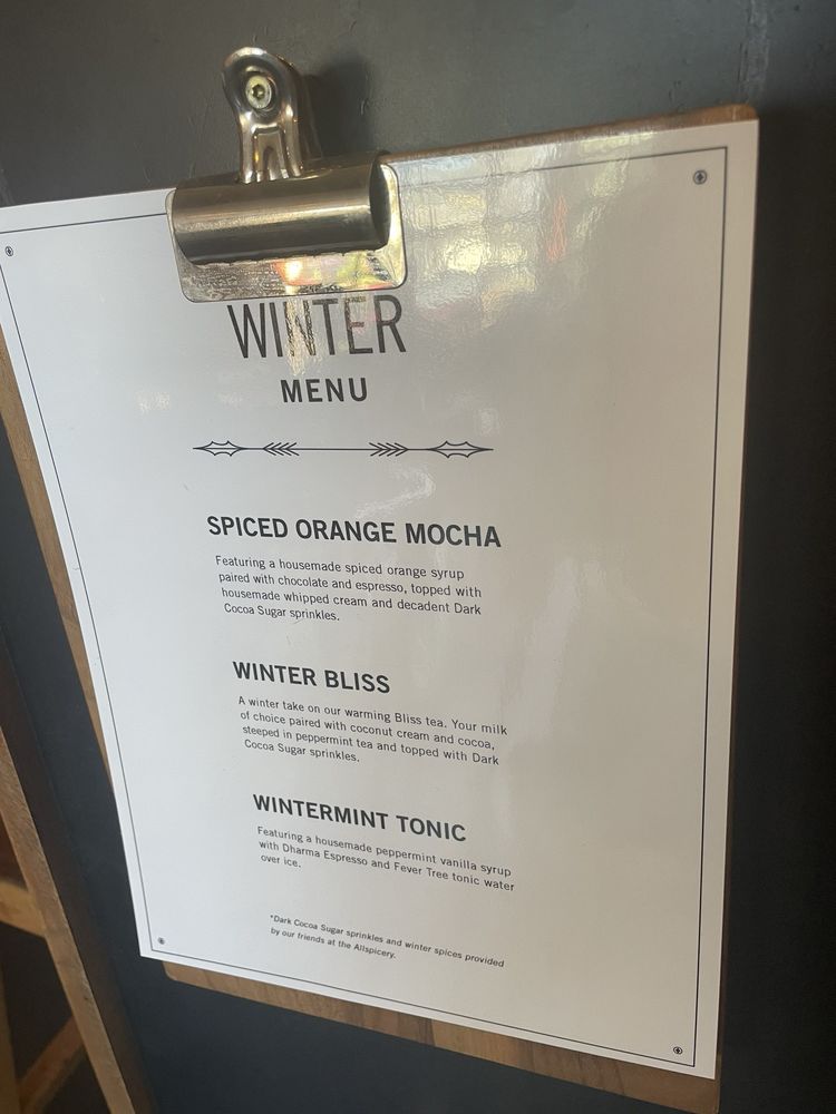Peppermint tea, coconut milk, and honey in steamed soy milk.